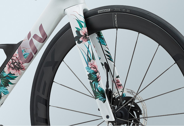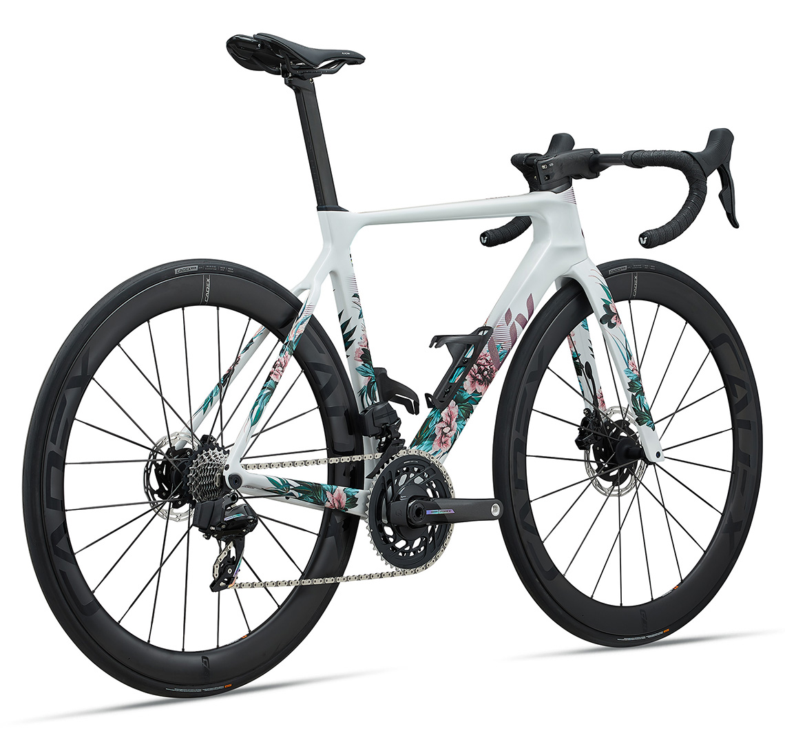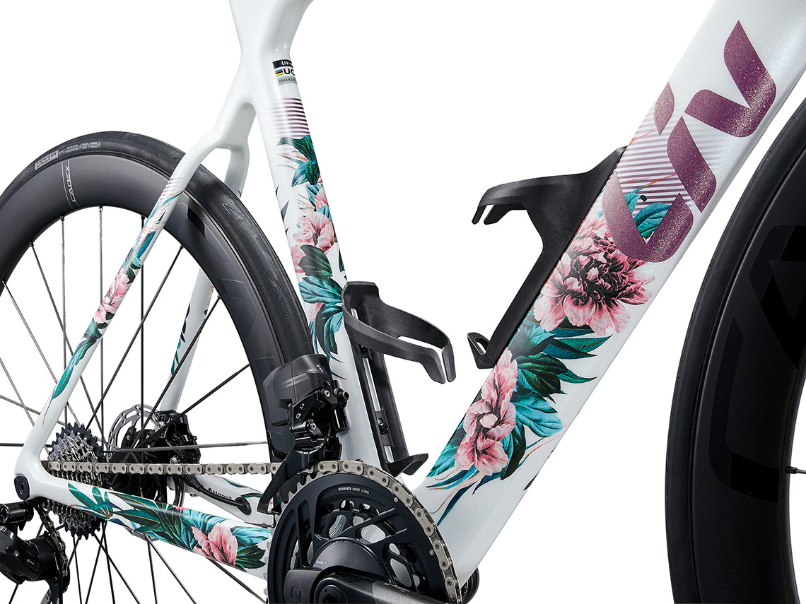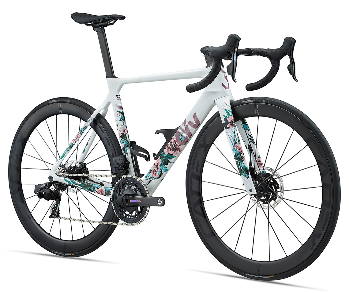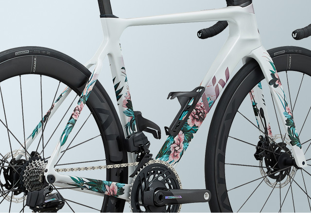 「エンヴィリブ」の最高グレード「ENVILIV ADVANCED SL」のLTDモデルが国内2台限定で新発売。特徴的なデザインは、ツール・ド・フランス・ファムで最優秀若手ライダーに送られるマイヨブランジャージと、Liv Racing TeqFindチームのバイクに採用される大胆な花柄をモチーフにしています。バイクには、ブランコレクションとしてトータルデザインされた特別仕様の「半袖ジャージ、キャップ、グローブ、ソックス」が付属します。