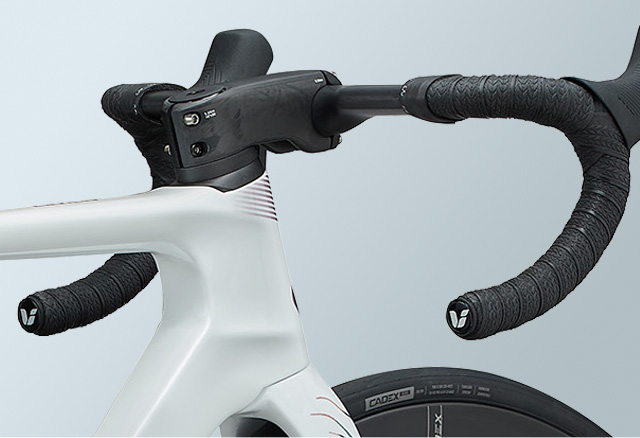 新たに設計されたケーブル内装式カーボンバー&カーボンステム。エアロ性能と高いメンテナンス性を両立しポジションの調整が簡単に。