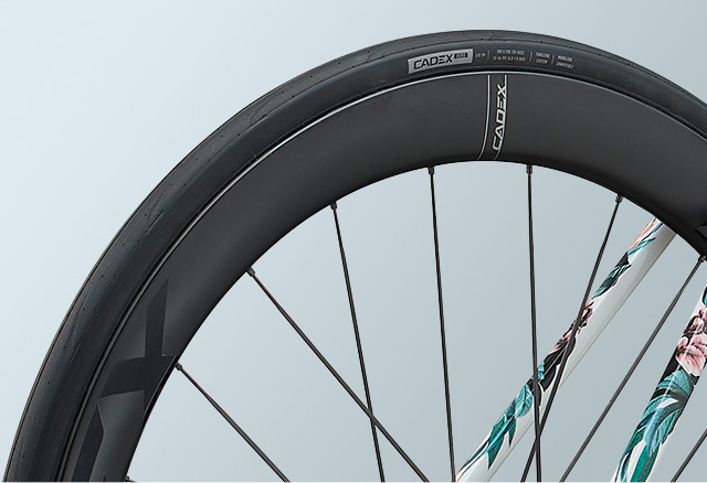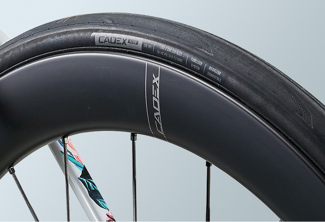 エアロ性能と低い転がり抵抗が特徴のプレミアムタイヤ。CADEXホイールとの組み合わせでクラス最高のエアロ性能を実現。